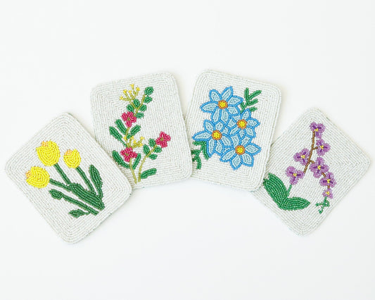 Hand-Beaded Flower Tile Coasters - Mixed Flowers