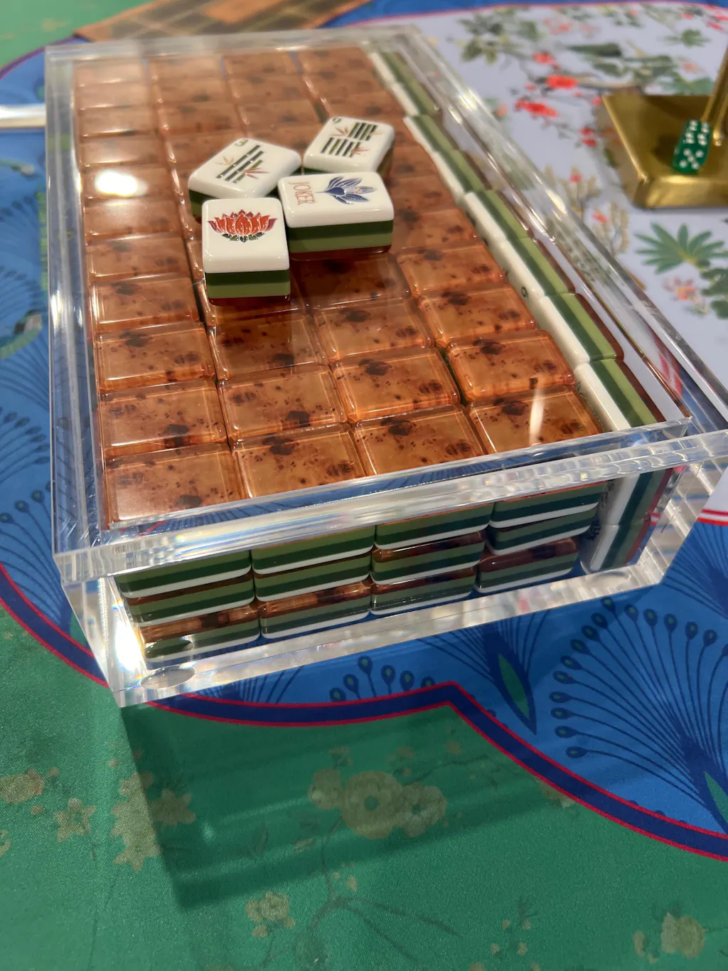 Custom clear acrylic display box to hold your mahjong tiles. Show off your pretty mahjong tiles even when you aren't playing.
