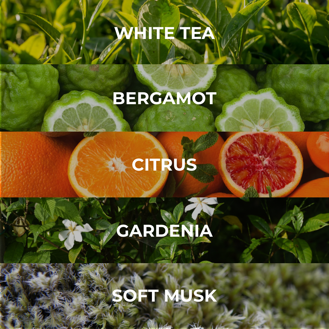 Bright, refined, and celebratory — a crisp blend of white tea, citrus, and soft florals designed to uplift any space.